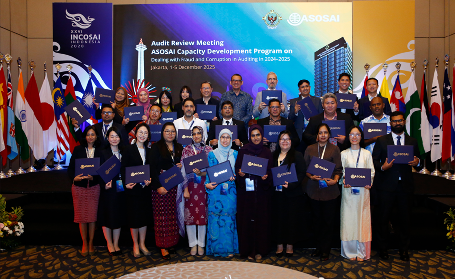 JAKARTA, INDONESIA, Jumaat, 14 Jamadilakhir 1447 / 5 Disember 2025Audit Review Meeting berkaitan dengan ASOSAI Capacity Development Program on “Dealing with Fraud and Corruption in Auditing” in 2024 – 2025  yang diadakan di Sheraton Grand Jakarta Gandaria City Hotel, Jakarta, Indonesia dari 1 hingga 5 Disember 2025 telah dihadiri oleh wakil-wakil dari 20 negara ahli ASOSAI dan juga turut dihadiri oleh enam (6) orang pakar sumber dari Supreme Audit Institution (SAI) Bhutan (Royal Audit Authority), SAI Indonesia (Badan Pemeriksa Keuangan Republik Indonesia), SAI Malaysia (Jabatan Audit Negara Malaysia), SAI Nepal (Office of the Auditor General), SAI Thailand (State Audit Office of the Kingdom of Thailand) dan SAI Turkiye (Turkish Court of Accounts). Delegasi dari Jabatan Audit Negara Brunei Darussalam telah diketuai oleh Dayang Dina Afida binti Haji Ahmad, Juruaudit Kanan.